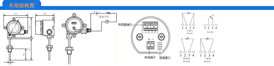 單支(一個4~20mA) 雙支(二個4~20mA) 雙支(一個4~20mA、一個Pt100) |
